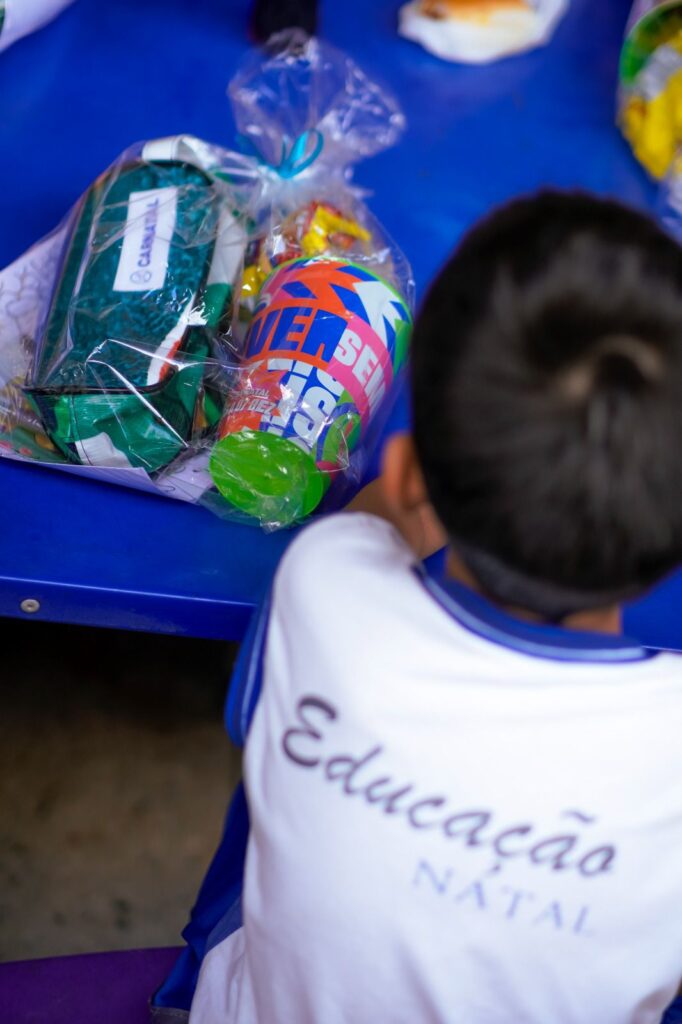 Os alunos do Centro Municipal de Educação Infantil (CMEI) professora Maria Salete Alves Bila, no bairro Planalto, em Natal, tiveram uma manhã diferente nesta quinta-feira (16) como parte das ações realizadas pelo Carnatal dentro do compromisso ESG – sigla para Governança Ambiental, Social e Corporativa. Com muita música e diversão, as crianças foram as primeiras a receber estojos confeccionados com lonas utilizadas na edição do ano passado do Carnatal. Além disso, ganharam copo do evento com bombons e chocolates além de kit de lápis de cor com alguns desenhos do Carnatal inspirados nos famosos livros de colorir Bobbie Goods. Tudo isso também com a presença da Naty, mascote do Natal Shopping e embaixadora das causas sociais e de sustentabilidade, e de recreadores que fizeram uma manhã muito divertida não só para as crianças. Diretor e sócio do Carnatal, Felinto Filho ressaltou a importância de ações como essa e que o evento está comprometido nessas práticas ESG. “Conseguimos proporcionar momentos de diversão e alegria para essa criançada. Além disso, mostramos o envolvimento da Cidade Carnatal com as boas práticas”, disse. No CMEI, cerca de 100 crianças receberam os kits com estojo, copo, lancheira, lápis de colorir e desenhos Bobbie Goods. A expectativa da organização do Carnatal é que, até fevereiro do próximo ano, 1.000 kits como esse sejam entregues em escolas da rede municipal de ensino de Natal. Diretor de Marketing do Carnatal, Antônio Torres disse que esse é o momento de consolidação de um trabalho em que lonas que estavam no corredor da folia e agora ganham nova funcionalidade. “Isso se materializa com a criação da marca Carnatal Sustentável que vai atuar ao longo de todo o ano e mostra que o evento vai muito além do corredor, trios e palco”, afirmou. Já a diretora administrativa do CMEI, Ivana Maria de Sena, elogiou e agradeceu a iniciativa de fazer uma manhã toda especial para as crianças. “Ver a felicidade delas em momentos assim nos gratifica”, comentou. A Head ESG do Carnatal, Danielle Mafra reforçou as práticas sustentáveis realizadas pelo evento e o reuso das lonas foi uma delas. “Foram mais de 20 ações que foram implementadas e a continuidade é muito importante para as pessoas e para o meio ambiente”, comentou. Esse foi a primeiro de uma série de eventos que o Carnatal Sustentável vai realizar com foco nas ações do seu compromissos com as práticas ESG no estado.