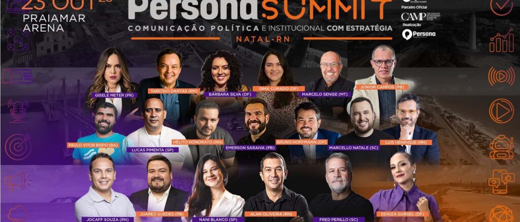 No dia 23 de outubro, a cidade de Natal receberá a 2ª edição do Persona Summit, considerado o maior congresso de comunicação política e institucional do Nordeste. O evento acontecerá no Praia Mar Arena, reunindo mais de 20 especialistas de todo o Brasil para debater estratégias, tendências e boas práticas em marketing político, inteligência artificial, direito eleitoral, pesquisa e branding pessoal. Com o sucesso da primeira edição, o Persona Summit cresceu em estrutura e visibilidade, atraindo grandes nomes do setor. Entre os palestrantes confirmados estão Paulo Vitor Bispo (Prefeitura de Salvador), Wilson Pedroso (estrategista de campanhas como a de João Dória e Bruno Covas, de São Paulo), Gisele Meter (Estratégia Parlamentar), além de nomes como Fred Perillo, Lucas Pimenta, Emerson Saraiva, Bruno Hoffmann, entre outros. O Rio Grande do Norte também estará bem representado por Alan Oliveira, Luis Henrique, Hélio Honorato, Bruno Oliveira, Jocaff Souza, entre outros profissionais locais. Voltado para políticos, assessores, profissionais de comunicação institucional e candidatos às próximas eleições, o evento oferece uma imersão completa nos desafios e soluções da comunicação pública e eleitoral. A programação inclui palestras, workshops e painéis com foco em resultados e inovação, além de oportunidades para networking e negócios. Os ingressos já estão disponíveis no site personasummit.com.br, com valores promocionais e ingresso social. Outras informações podem ser acessadas pelo Instagram @personasummit ou via WhatsApp: (84) 99101-0912. O Persona Summit conta com o apoio de instituições como o CAMP, SINAPRO-RN, FEMURN e AMLAP, reforçando seu papel como evento de referência no setor. “Será uma edição com mais conteúdo, mais interação e novas experiências. A comunicação política evolui constantemente, e o evento refletirá essa transformação”, destaca Alan Oliveira, organizador e estrategista político.