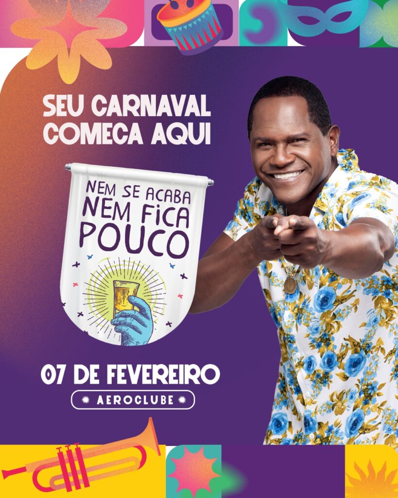 O pré-carnaval mais tradicional e aguardado do Rio Grande do Norte já tem data marcada para sacudir a cidade. No dia 07 de fevereiro de 2026, o Nem Se Acaba Nem Fica Pouco retorna ao Aeroclube para sua sétima edição, prometendo mais uma noite histórica de folia, música e celebração. Reconhecido como o maior e melhor bloco de pré-carnaval do estado, o evento reúne milhares de foliões todos os anos e se consolida como o grande marco de abertura da temporada carnavalesca no RN. Em 2026, o anfitrião não poderia ser outro: Tatau, presença confirmada, volta ao palco com sua energia inconfundível, clássicos do axé e um repertório que já virou sinônimo do bloco. Outras atrações serão anunciadas em breve. Com público fiel, clima vibrante e uma mistura certeira de música, alegria e tradição, o Nem Se Acaba Nem Fica Pouco reafirma seu papel como uma das experiências pré-carnavalescas mais aguardadas do Nordeste — a oportunidade perfeita para quem quer entrar no ritmo do carnaval com tudo. As vendas do lote promocional começam nesta sexta-feira (12), às 10h, e seguem até 10h do domingo, exclusivamente pela Bilheteria Digital. Mais informações no Instagram oficial: @nemacabanempouco.