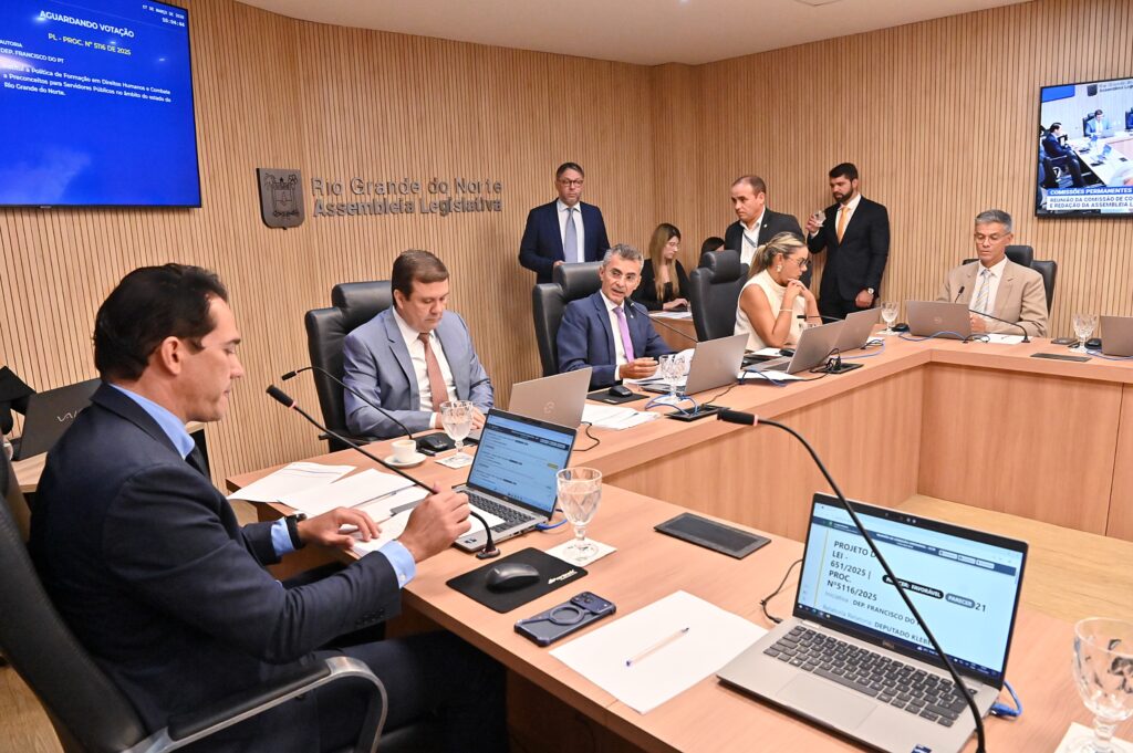 A Comissão de Constituição, Justiça e Redação (CCJ) da Assembleia Legislativa do Rio Grande do Norte aprovou, nesta terça-feira (17), um conjunto de projetos de lei nas áreas de educação, proteção animal, cultura e políticas públicas. Na área educacional, foram aprovadas duas matérias de iniciativa do Governo do Estado: a que prorroga, até 2027, a vigência do Plano Estadual de Educação e a que reajusta os vencimentos básicos dos cargos de professor e especialista da educação. No campo da proteção animal, receberam parecer favorável o projeto do deputado Neilton Diógenes (PP), que proíbe o acorrentamento de cães e gatos e a manutenção em condições inadequadas; o do deputado Taveira Júnior (União Brasil), que estabelece medidas de proteção a animais em situação de desastre; e o do deputado Ubaldo Fernandes (PSDB), que institui a política estadual de incentivo à formação de cães-guia. A pauta cultural concentrou o maior número de aprovações na reunião desta terça-feira, com o reconhecimento como patrimônio imaterial de diversas manifestações e eventos no estado. Foram aprovados o projeto da deputada Divaneide Basílio (PT), que reconhece a dança de São Gonçalo, em Portalegre; o do deputado Dr. Kerginaldo (PL), sobre a festa de São Sebastião, em Caraúbas; o do deputado Ivanilson Oliveira (União Brasil), que reconhece os festejos de emancipação política de Baraúna; o do deputado Nélter Queiroz (PSDB), que trata do circuito Sabores da Serra; e outro de sua autoria, que reconhece a Igreja Matriz de São João Batista, em Assú. Também foram aprovados o projeto da deputada Cristiane Dantas (SDD) que institui o Caminho Religioso dos Mártires de Cunhaú e Uruaçu; o do deputado Kleber Rodrigues (PSDB), que inclui no calendário oficial o festival “A praia é para todos”, em Tibau; e o do deputado Hermano Morais (PV), que reconhece a festa de São Sebastião, em Guamaré. Ainda na área cultural e de utilidade pública, foram aprovadas matérias como a do deputado Adjuto Dias (MDB), que reconhece a Rádio Rural de Caicó; do deputado José Dias (PL), que declara de utilidade pública o Instituto Anjo da Caridade Padre João Maria; do deputado Tomba Farias (PL), sobre a Associação Serra da Volta; e da deputada Eudiane Macedo (PV), que reconhece a Associação dos Produtores e Filhos dos Produtores do Assentamento Dom Pedro II. Também receberam aprovação projetos do deputado Ubaldo Fernandes (PSDB) que reconhecem como de utilidade pública a Associação de Apoio Social, Cultural e Esporte Pé de Serra, em Serra Caiada; a Associação dos Produtores de Trapiá 1, em Angicos; e o Grêmio Recreativo Escola de Samba Grande Rio do Norte, além de proposta que reconhece a trilha Amigos de Fernando Pedroza como patrimônio cultural, turístico e econômico. Na área social, foi aprovado o projeto do deputado Ivanilson Oliveira que assegura prioridade em programas habitacionais para mães e responsáveis por pessoas com transtorno do espectro autista. Já o deputado Hermano Morais teve aprovada proposta que trata do abono de faltas para servidores públicos convocados para competições esportivas oficiais. Também foi aprovado o projeto do deputado Francisco do PT, que institui política de formação em direitos humanos para servidores públicos, e o do Governo do Estado que cria o Fundo de Excelência e Modernização do Controle Interno (FEMCI/RN). Participaram da reunião desta terça-feira os deputados Francisco do PT, Eudiane Macedo (PV), Galeno Torquato (PSDB), Kleber Rodrigues (PSDB), Coronel Azevedo (PL) e Ubaldo Fernandes (PSDB).