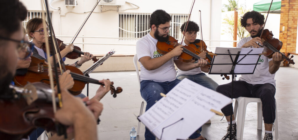A música é uma linguagem universal que transcende fronteiras culturais, sociais e geográficas e estabelece conexões profundas entre as pessoas. Tem o poder de unir indivíduos de diferentes origens, idades e crenças, criando uma atmosfera de comunidade e pertencimento. É com este objetivo que o projeto Tocando a Vida com D’Amore lança a ação Tocando a Vida pela Cidade. Esta ação vai levar música e alegria aos quatro cantos da capital potiguar, desembarcando em instituições que atuam nas áreas da educação, saúde e assistência social. As inscrições estão abertas e, as instituições interessadas, já podem acessar o link https://docs.google.com/forms/d/e/1FAIpQLScghM61KPZDvlzXYj-nXDQfVojHAUS0Cx5YLMsn49uFtrGACA/viewform, preencher o formulário e aguardar o contato da equipe. O Tocando a Vida com D’Amore desenvolve suas ações na Atitude Cooperação – com a oferta do ensino da música clássica e popular, por meio de aulas teóricas e práticas para jovens da zona oeste de Natal. Realiza, anualmente, uma temporada fixa de concertos e recitais, no entanto, a coordenação enxergou a necessidade de ir além. “Entendemos que muitas vezes o acesso às salas de concerto e locais de fruição musical torna-se difícil, devido a desafios como limitações de mobilidade, questões de saúde, dificuldades financeiras ou falta de tempo, muitos indivíduos acabam ficando afastados do contato com a música. Foi assim, que pensamos em propagar a música por todos os cantos com o Tocando a Vida pela Cidade. O nosso intuito é levar essa experiência musical para todos, sem barreiras com o Tocando a Vida pela Cidade”, explica Fernanda Ferreira, coordenadora do Tocando a Vida. Sobre o Tocando a Vida com D’Amore O projeto foi criado em 2010 pelo maestro e violinista Oswaldo D’Amore. Visa ampliar o conhecimento cultural e possibilita o ingresso de crianças e adolescentes no universo musical através das seguintes oficinas: Musicalização Infantil ( flauta doce e canto coral), Contrabaixo Acústico, Piano, Teoria Musical, Viola, Violino ( Infantil e Juvenil), Violão, Violoncelo e Lutheria. Promove encontros semanais, nos quais os alunos recebem aulas teóricas e práticas, além da formação de Orquestra de Cordas e Música de Câmara. Promove ainda de forma continuada Master Classes e oficinas de capacitação e preparação abordando assuntos que tangenciam o universo da formação musical, em parceria com músicos locais, nacionais e internacionais, e instituições musicais.O projeto Tocando a Vida com D’Amore tem patrocínio do Governo do Estado do RN, por meio da Lei Câmara Cascudo, Neoenergia Cosern e Instituto Neoenergia. Conta ainda com parceiros como Atitude Cooperação, Escola de Música da UFRN; UFRN e Festival Johannes Martin Kränzle.