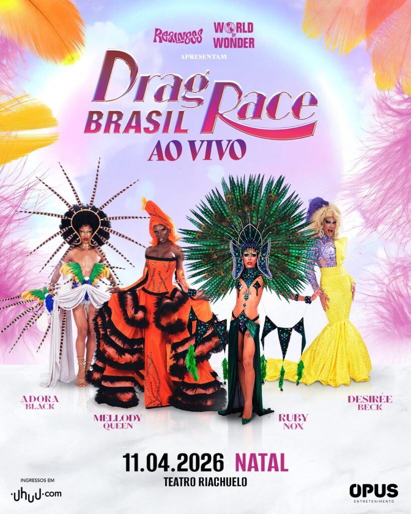 O “Drag Race Brasil – Ao Vivo” é um show idealizado e produzido pela Realness, maior produtora do segmento na América Latina e referência na produção de eventos envolvendo o programa, em uma parceria com a estadunidense World of Wonder, produtora oficial da franquia. Fãs de vários lugares do Brasil terão a chance de conhecer e prestigiar suas estrelas favoritas do programa em uma superprodução. Em Natal a apresentação será neste sábado, 11 de abril, no Teatro Riachuelo.