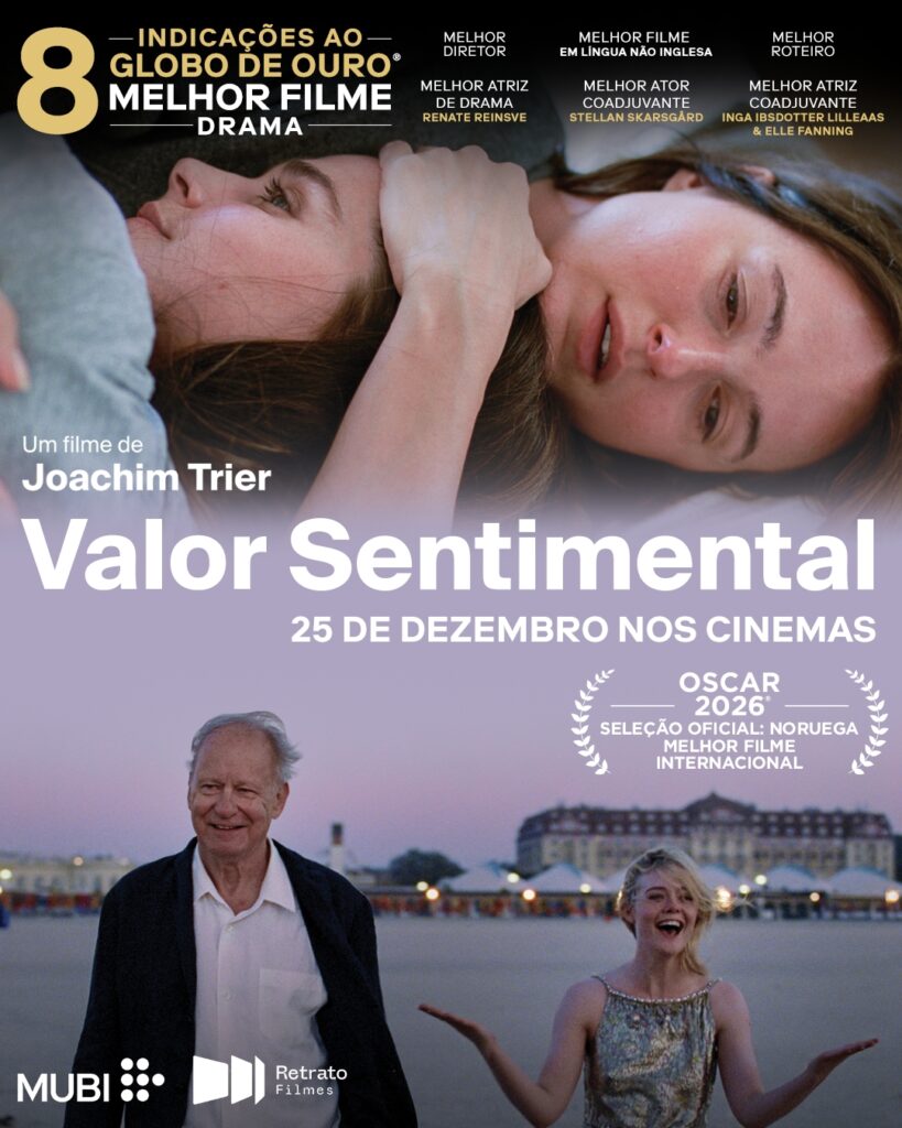 Entre as próximas estreias, estão duas grandes apostas para o Oscar de 2026. “Valor Sentimental”, de Joachim Trier, chega ao circuito comercial no dia 25 de dezembro. “Sirât”, de Oliver Laxe, com produção de Pedro Almodóvar, entra em cartaz no dia 26 de fevereiro. “Ruas da Glória”, “Surda”, “Dois Procuradores”, “Mãe e Filho” e “Criaturas – Uma Aventura entre Dois Mundos” chegarão ao circuito nacional em 2026.